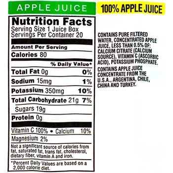 Nutrition Facts Apple Juice Box Tree Top - The resulting expelled juice may be further treated by enzymatic and centrifugal clarification to remove the starch and pectin.