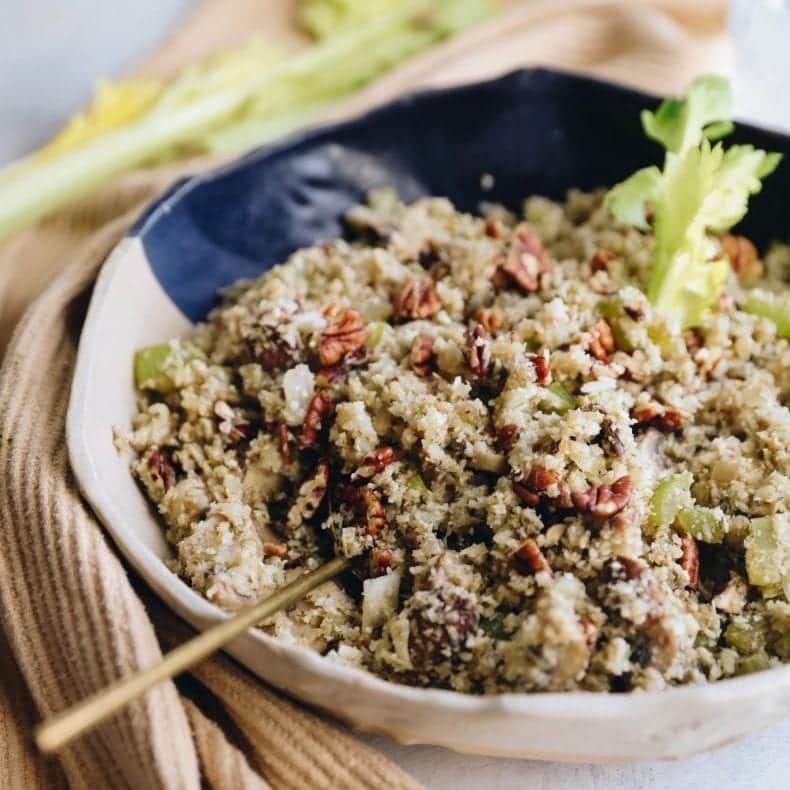 Cauliflower Stuffing Paleo Keto Whole30 Every Last Bite - If you can't or don't eat bread, but still want a in addition to cauliflower, you'll find onion, celery, carrots and mushrooms, but feel free to add whatever vegetables and herbs you use in your favorite stuffing.