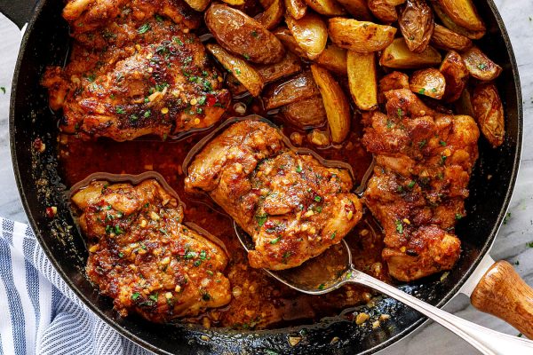 Garlic Butter Chicken Thighs With Baby Potatoes Skillet Recipe Chicken And Potatoes Recipe Eatwell101 - Why you will love this garlic parmesan chicken and potatoes recipe.but they've obviously never heard about instant pot chicken thighs and potatoes as well.