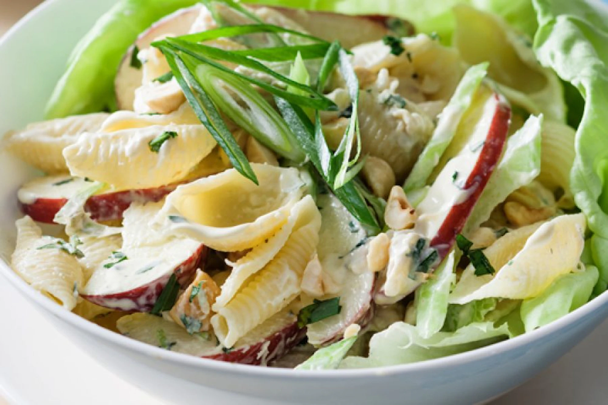 Tarragon Chicken Pasta Salad - This chicken salad recipe has roasted chicken mixed with tart apple, onion, tarragon, and mayonnaise for an elegant salad served over greens or as a sandwich.
