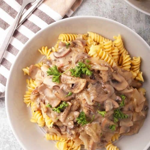 Vegan Mushroom Stroganoff Vegan Mushroom Stroganoff - Traditionally, stroganoff contains mushrooms along with beef.